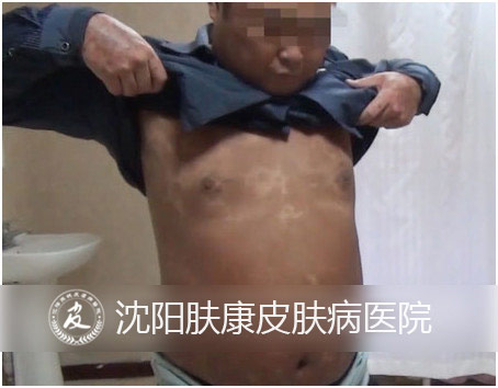 而面对刘先生的病情,贾院长分析到:"他刚来的时候吧,确实皮癣比较厚,全身面积能占90%以上,比较重的病号。针对他的情况,病史又比较长,主要是采用中西医结合疗法,物理疗法,自体血循环透析、窄波UVB,再辅助一些药物治疗,进行辩证治疗,现在基本就是全部康复了。现在就还剩下一些色素斑,需要慢慢的康复。"